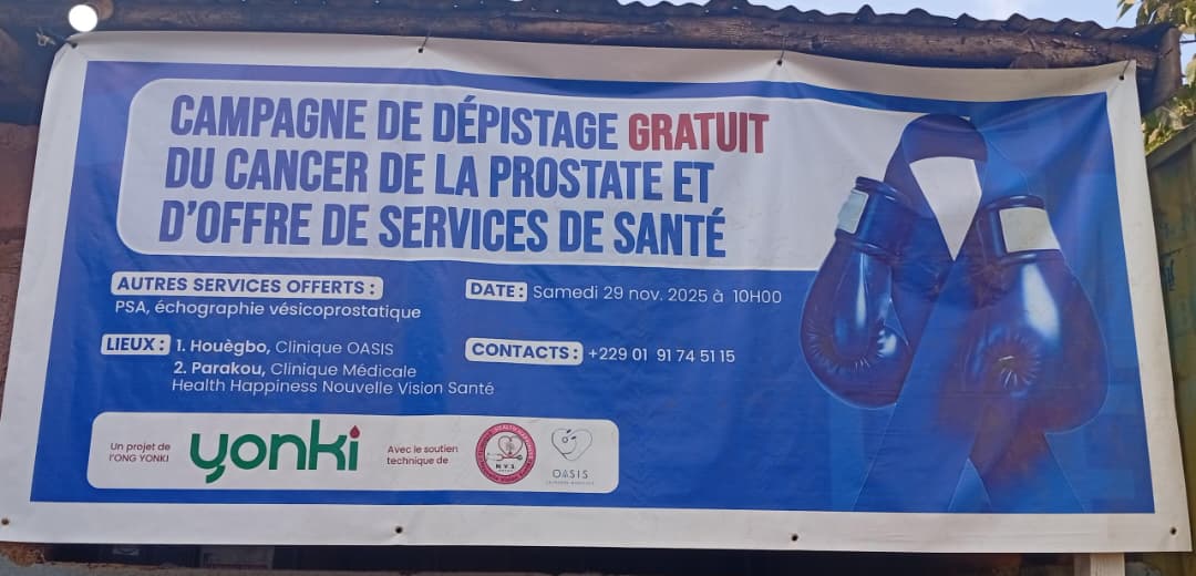 Dans le cadre de l’initiative "Novembre Bleu", une séance de dépistage gratuit du cancer de la prostate s’est déroulée le samedi 29 novembre 2025 à la clinique Health Happiness Nouvelle Vision Santé (Nvs), située au quartier Baka à Parakou. Organisée par l’Organisation Non Gouvernementale (Ong) Yonki, en collaboration avec la clinique, cette activité avait pour objectif de sensibiliser, prévenir et d'accompagner les hommes dans la lutte contre cette maladie. La séance s’est déroulée sous la supervision du docteur Simplice Hinvo, directeur de la clinique Health Happiness Nvs, en présence d’une délégation de l’Ong Yonki conduite par Kadidjatou Kasse Adam. De nombreux hommes ont pris part à cette campagne.