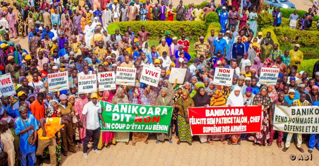 Les forces vives de la commune de Banikoara ont manifesté le mardi 9 décembre 2025, pour exprimer leur indignation suite à la tentative de coup d’Etat déjoué le dimanche 7 décembre dernier. Elles disent ainsi "non" à un coup d’Etat au Bénin. C'est à travers une grande marche de protestation qui a mobilisé des milliers de population. Cette marche a échoué à la mairie de Banikoara où une déclaration a été lue par Fadel Séro, devant le maire Bio Sarako Tamou entouré pour la circonstance par ses adjoints, chefs d’arrondissements, élus et leaders politiques de diverses formations politiques ainsi des têtes couronnées, sages et notabilités de la commune.