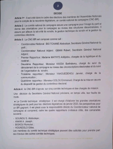 Le parti Bloc Républicain qui est le premier à obtenir son récépissé définitif est désormais convaincu de sa participation aux élections législatives du 8 janvier prochain. A cet effet, il a dévoilé les membres des différents comités qui seront chargés de conduire le processus électoral à l’interne du parti.