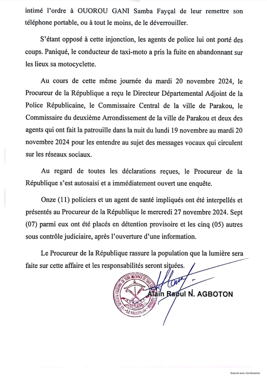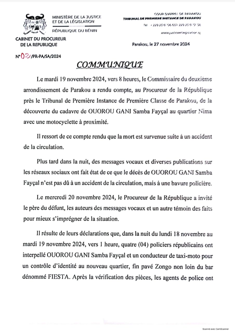 Le Procureur de la République près le tribunal de Première instance de Première classe de Parakou, Alain Raoul N. Agboton, a fait un point sur l’enquête concernant le décès du jeune Fayçal, survenu à la suite d’une bavure policière.