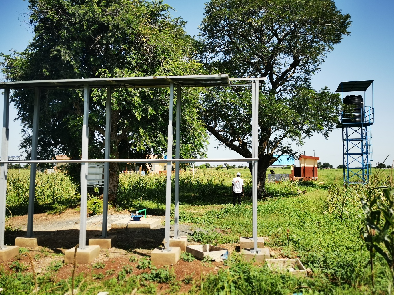 Photo : Dispensaire de Pétinga (Cobly) réhabilité par MSF avec la réhabilitation des latrines et l’installation d’un forage d’eau potable équipé de panneaux solaires – Octobre 2025