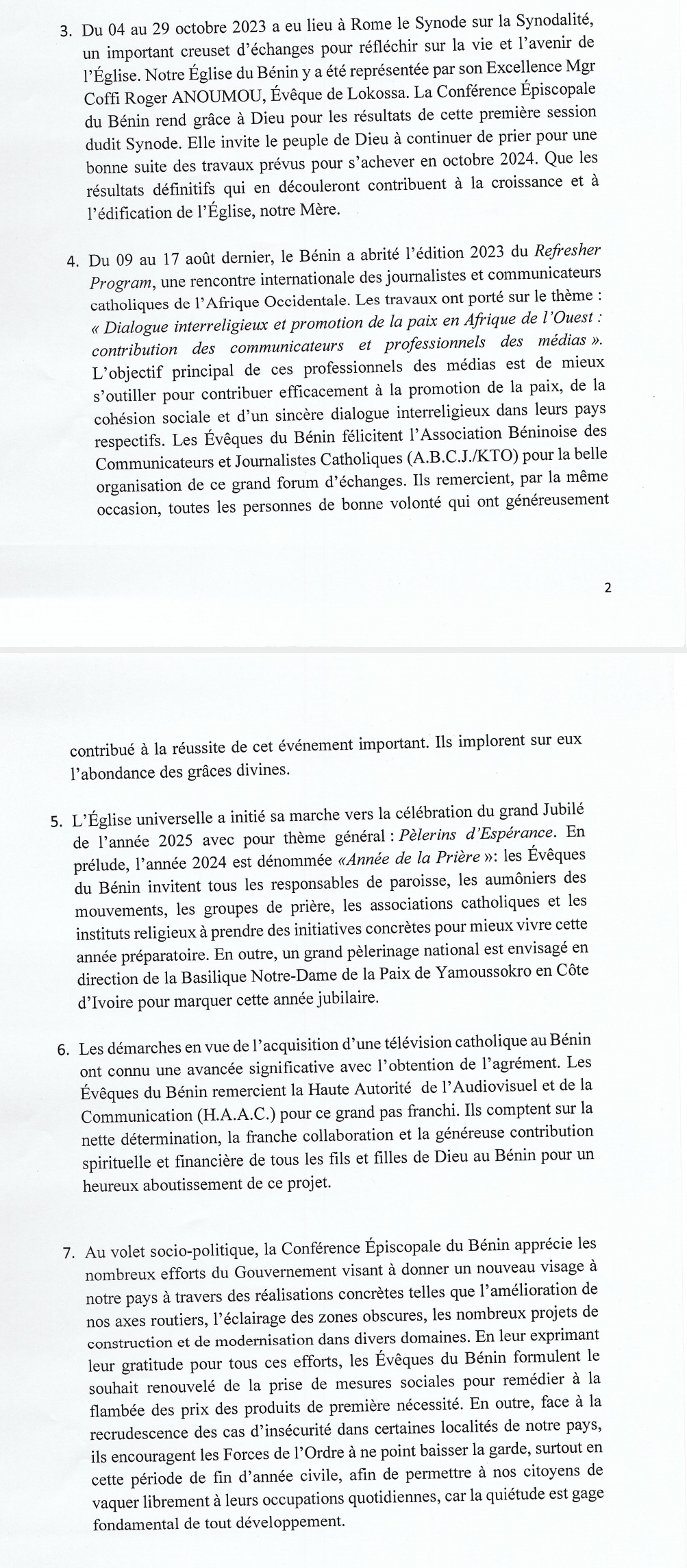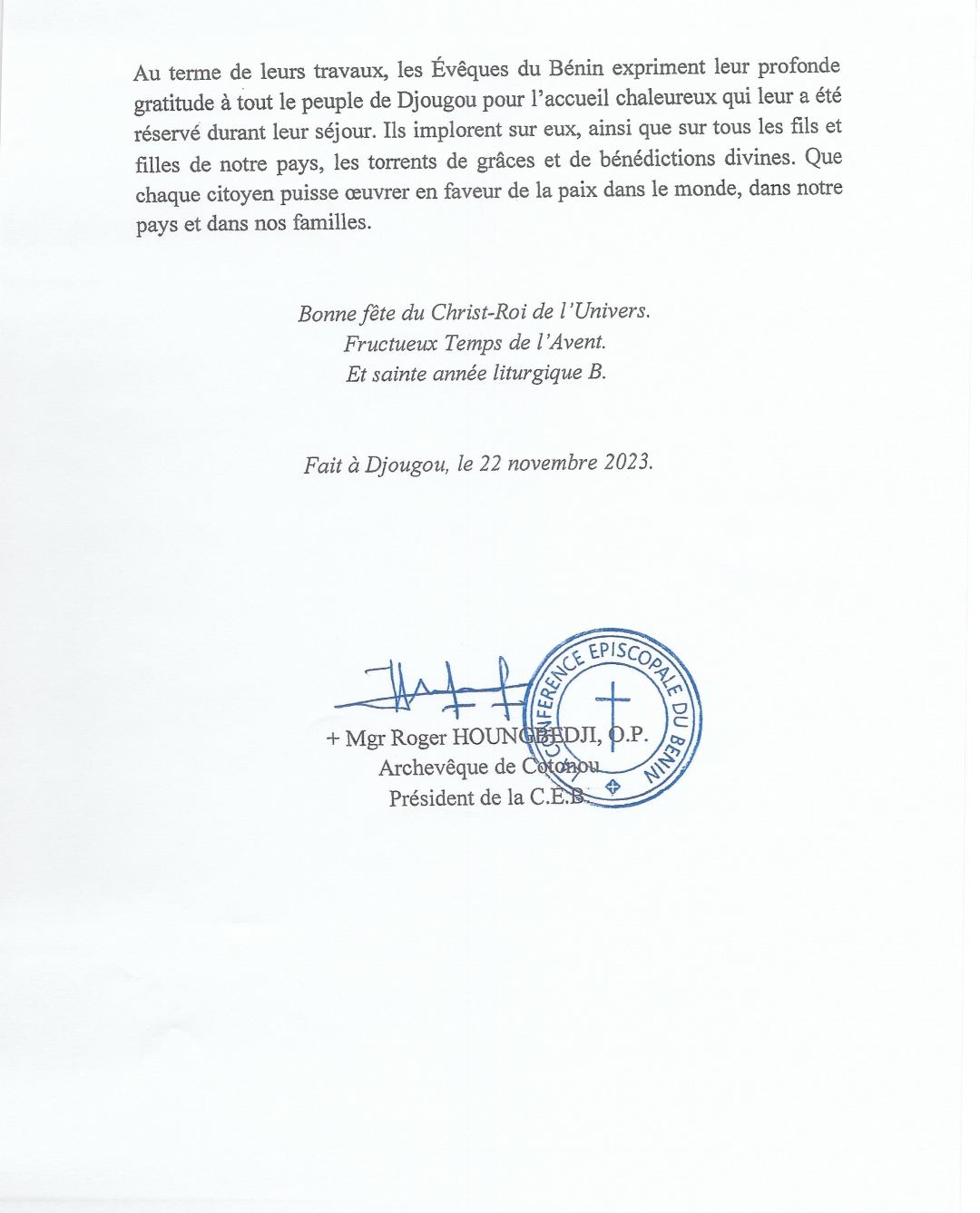 À souligner que bien d’autres sujets ont été abordés par les évêques.