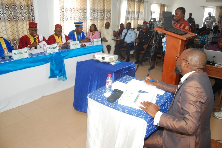 Après avoir présenté le fruit de ses résultats de recherche et répondu aux questions du jury, il a obtenu la mention très honorable avec félicitations du Jury. « Le jury l'a déclaré, digne de grade de Docteur de l'Université d'Abomey-Calavi en Études Anglophones, dans la spécialisation, civilisation britannique avec la mention très honorable, et félicitations du jury », a déclaré le Président du jury Professeur Innocent Sourou Koutchadé, au terme de la soutenance.