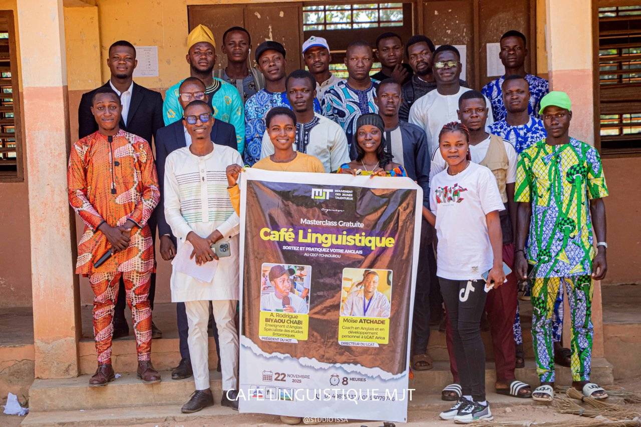 Le Mouvement des Jeunes Talentueux (Mjt) dirigé par Adetchéguoun Rodrigue Chabi Biyaou a une nouvelle fois marqué les esprits en organisant, le samedi 22 novembre 2025, un café linguistique au Collège d'Enseignement Général (Ceg2) de Tchaourou. Placé sous le signe de l’apprentissage, du partage et de l’inspiration, cet événement a réuni élèves, enseignants, coachs formateurs et jeunes leaders locaux, dans une ambiance à la fois studieuse et chaleureuse.