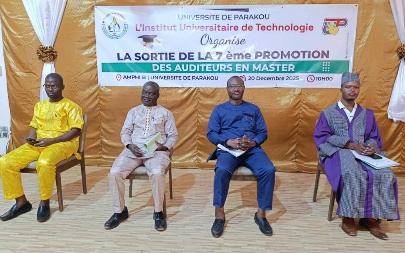 L’amphithéâtre B de l’Université de Parakou (Up) a servi de cadre, le samedi 20 décembre 2025, à la cérémonie de sortie de la 7e promotion des Auditeurs en Master de l’Institut Universitaire de Technologie (Iut). La cérémonie de sortie et de remise de parchemins s'est déroulée en présence du recteur de l’Up, Professeur Bertrand Sogbossi Bocco, du directeur de l’Iut Henri Tchopkonhoué, des enseignants, étudiants ainsi que de nombreux invités.