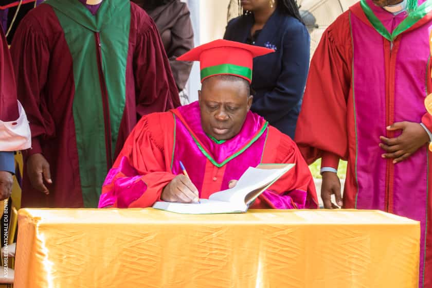 Il faut rappeler que le nouveau Docteur avait à ses côtés Victor Dassi Adossou, président de la Cour suprême, Ismath Bio Tchané Mamadou, présidente de la Cour des comptes, Pascal Essou, Médiateur de la République, Edouard Loko, président de la Haute Autorité de l’Audiovisuel et de la Communication (Haac), l’honorable David Godonou Houinsa, Deuxième secrétaire parlementaire, Charlemagne Yankoty et Franck Okpeitcha, respectivement maire de Porto-Novo et maire d’Ifangni. Étaient également présents à ce moment œcuménique, l’épouse du récipiendaire, Apolline Vlavonou, ses enfants, ses parents, amis et proches ainsi que les responsables et toute la communauté parlementaire.
