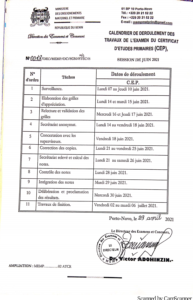 Le calendrier du déroulement des épreuves écrites, orales et pratiques de l’examen du Certificat d’Etude Primaire (Cep) session de 2021, est désormais connu. A travers une note en date du 29 avril 2021, le Ministre des Enseignements Maternel et Primaire (Memp) a rendu public les dates du déroulement des différentes épreuves entrant dans le cadre de cet examen.