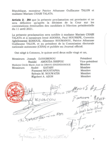 PRÉSIDENTIELLE AU BÉNIN : Voici la décision de la cour constitutionnelle